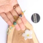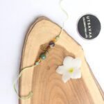 This Om Rakhi for brother is Made with Natural Gemstone Crystals – Citrine , Green aventurine, Amethyst. Small “OM” pendant as centre piece.